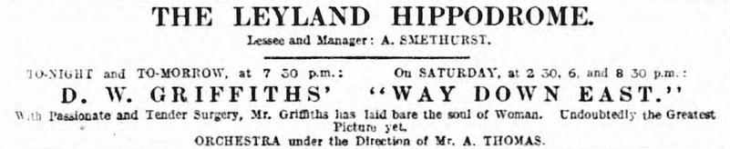 After World War I Alfred worked in Blackpool and applied to a firm of solicitors. His family were quite well off and he and his sisters had been left property in Manchester. But in 1920 the corporation compulsorily purchased the houses to widen the main road into Manchester. Alfred changed his mind about becoming a solicitor and they took the tenancy of the Leyland Hippodrome, also known as Greens cinema. Alfred played the piano. Hilda ran the business. They lived in Hastings Road, Leyland.